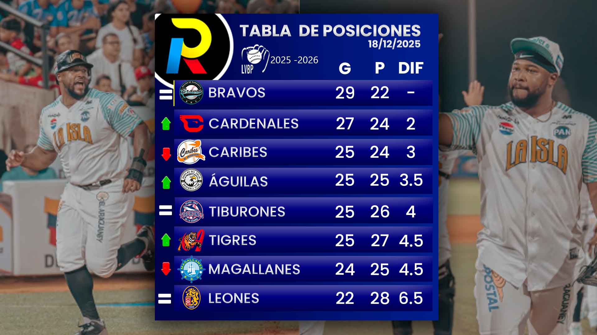 Así va la LVBP 2025- 2026 luego de lo vivido este jueves 18 de diciembre y de acuerdo con nuestra tabla de posiciones actualizada con todos los equipos del beisbol venezolano.