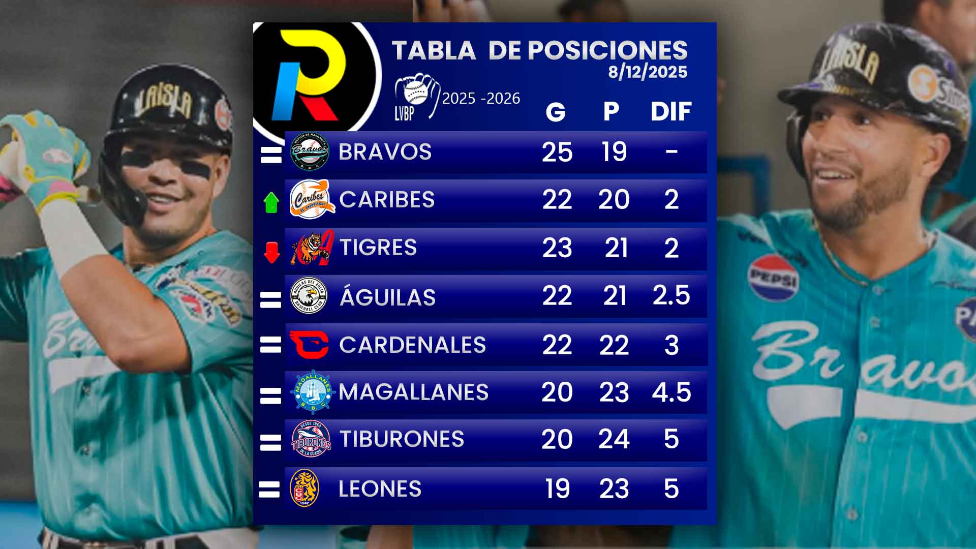 Así va la LVBP 2025- 2026 luego de lo vivido este lunes 8 de diciembre y de acuerdo con nuestra tabla de posiciones actualizada con todos los equipos del beisbol venezolano.