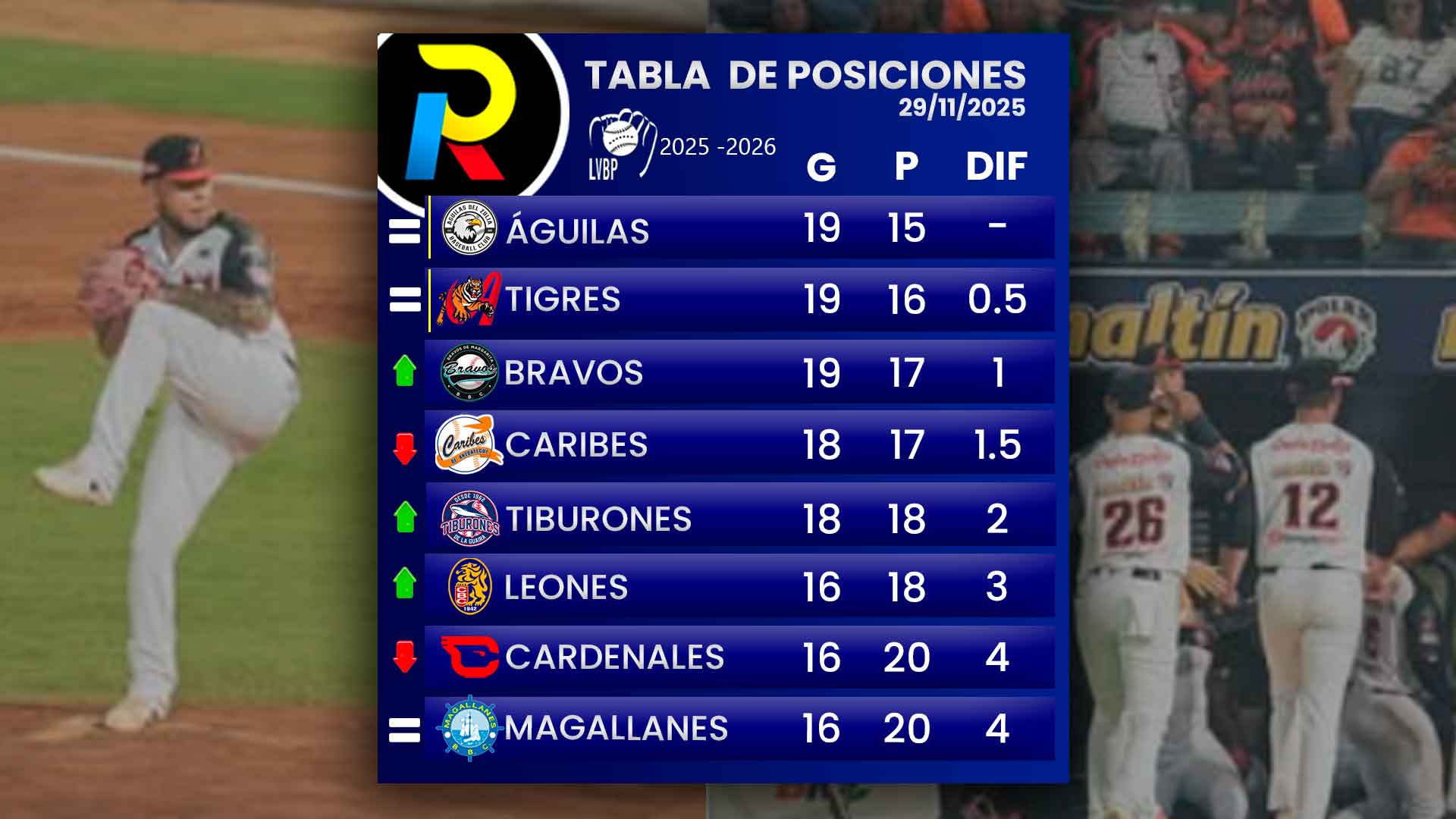 Así va la LVBP 2025- 2026 luego de lo vivido este viernes 28 de noviembre y de acuerdo con nuestra tabla de posiciones actualizada con todos los equipos del beisbol venezolano.